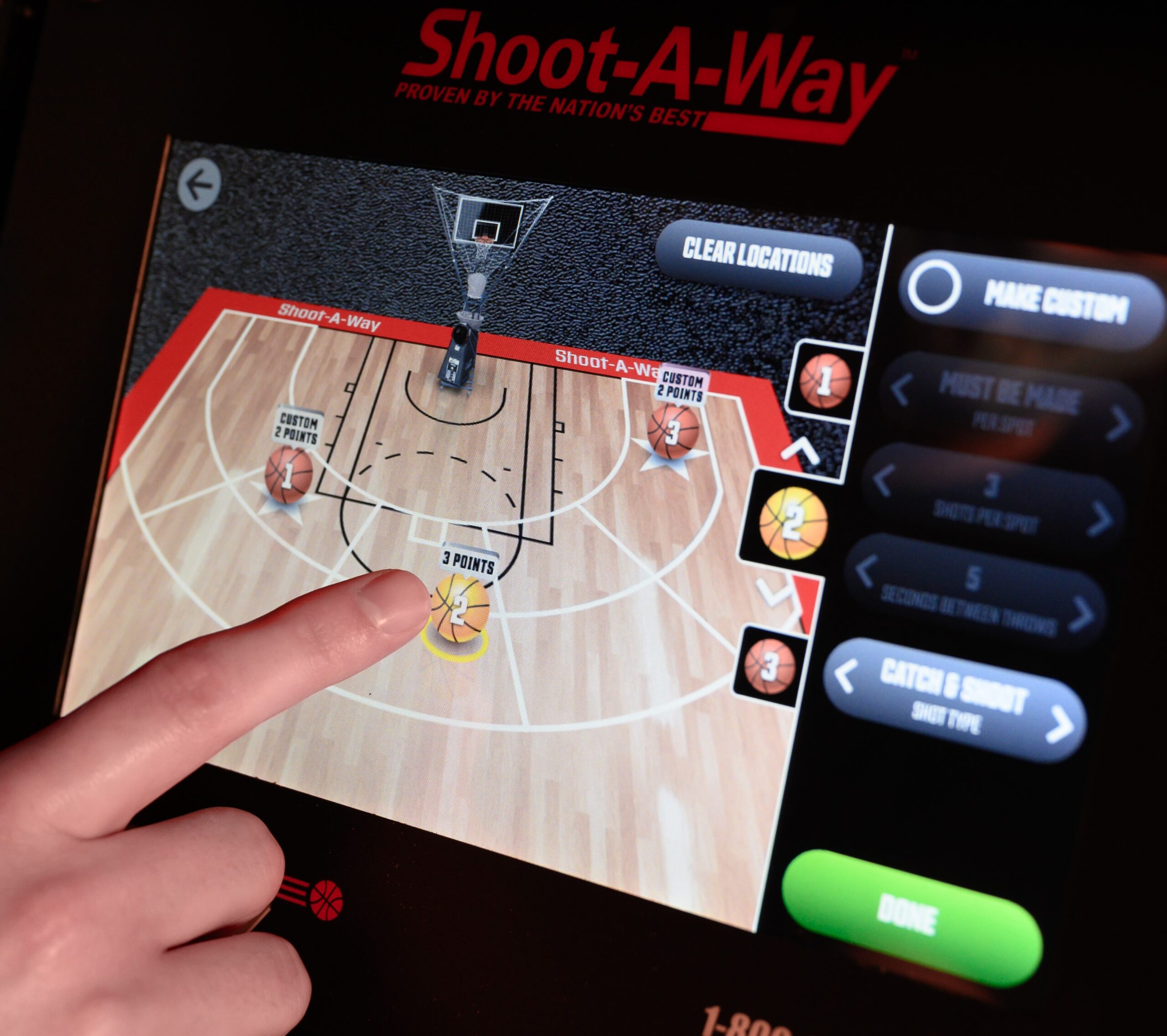 - The Floor is Yours – With over 200 programmable locations, you can touch any spot on the floor to shoot from, or drag and drop a ball to change a location.